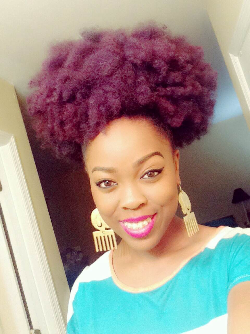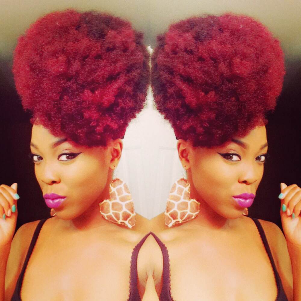 Man, Those vibrant, bright hair colors is on game point! She rocks it and it compliments her face. That thick, full, and kinky hair makes my skin melt. I’m in awe. It’s like she can’t go wrong. The afro pik earrings is an eye-catcher. I remember a few style icon’s having similar earrings. Where do ladies get them from? They are cool and it emphasizes something. I see purple in your hair in 2, 9, and 10 which are my favorite colors!