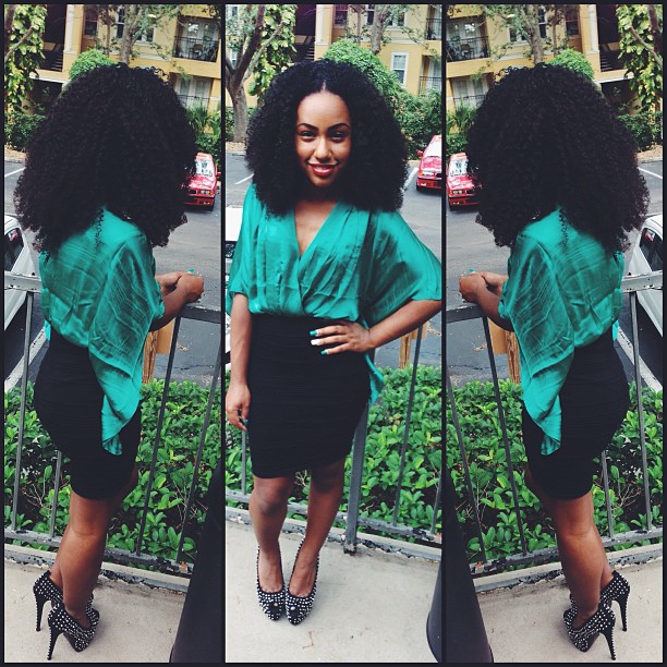 A: Well, I used to have a medium fade…started growing it out by wearing extensions. Then when the extensions came off, saw my curly hair and how much I loved it. So I decided to just let it grow. From time to time I either get a sew in to give my hair a break, or I leave out my natural for a couple of months.