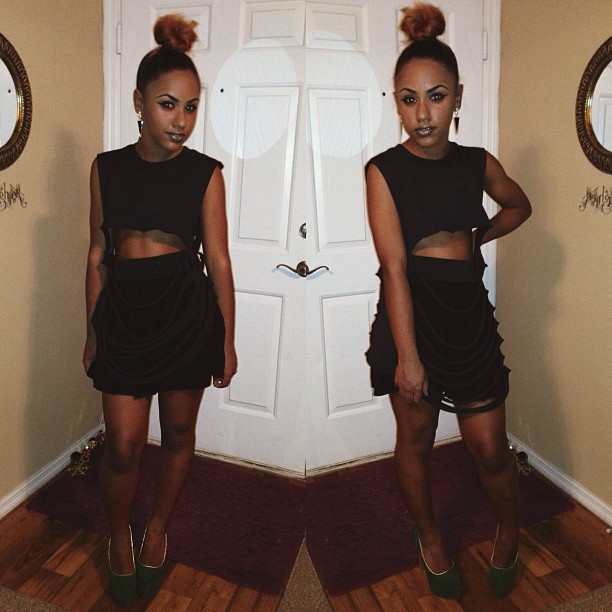 A: My 6 inch Jeffrey Campbell pumps. My Mac Cartier Vintage Chanel Inspired Shirt…and (this is really tough) I guess you can say my black leather skinnies. You can never go wrong with leather.