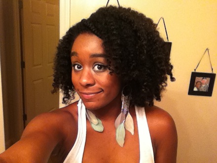 A: Why did I go natural? Hmm, well I was 20 years old and had no clue that people could “go natural”. I thought relaxers were what black girls did, period! Oh how naive I was until my best friend said she wasn’t getting relaxers anymore. At first I was the girl who was saying stupid things like, “you don’t have that kind of hair to do that.” I do regret those words, but now I know better. Knowledge is power, right? My curiosity got the best of me I was tired of always getting to shoulder length hair and having to cut it again and again because my ends would break, split, scream, kick and holler (so to speak)! Not to mention, the chemical burns were atrocious. So after that last creamy crack session in 09’ I was done for good! My last relaxer was in September of 2009. I big chopped 7 months after that, so as a complete natural it has only been 2 years and 6 months.