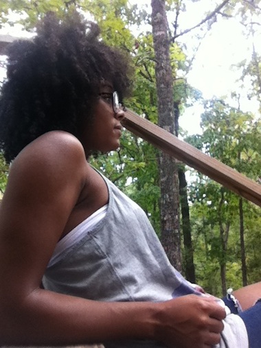 A: If I am going to shampoo my hair instead of just co-wash I try to pre-poo the night before with coconut oil. While my hair is sectioned off in twists, I wash my scalp with homemade shampoo using Dr. Bronner’s Lavender Castile Soap, sage tea, and tea tree oil. My husband actually makes it because he wanted an all natural shampoo for his hair! I have rubbed off on him :). Another shampoo I’ll use is Creme of Nature’s Ultra Moisturizing Shampoo. After the shampoo I’ll use Aubrey Organics GPB Conditioner mixed with honey as a deep conditioner. Rinse, put Beautiful Textures Tangle Taming Leave In, flaxseed gel, and shea butter mix on top. Twist it up and let it dry over night. In the morning I’ll put some more shea butter mix on it, style it however and go. When I don’t have time to do a deep condition, I’ll just rinse out the shampoo and go straight to the leave-in conditioner and sealing part. I try to stay as simple as possible because the detangling and shampooing can take up half of my day!