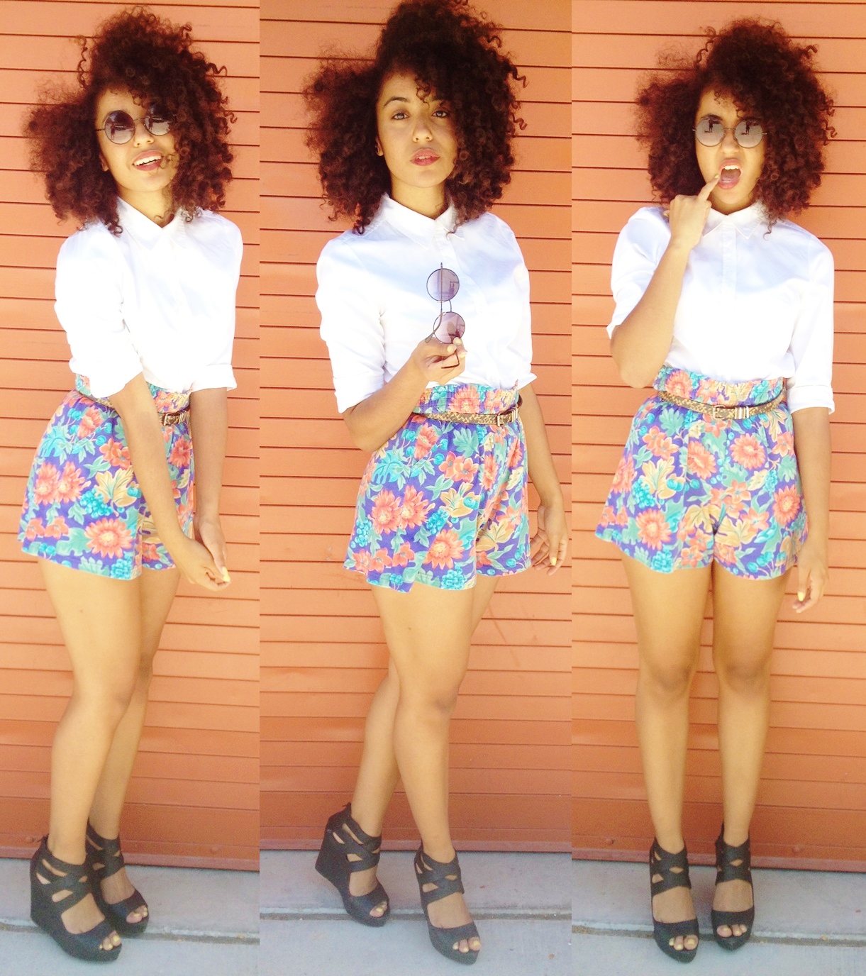 D: Every day is a blur of waking up, showering, towel dry and product application. Right now I’m using an olive oil serum that was originally meant for heat protection, but moisturizes my hair like crazy and smells like candy. I put in a few palmfuls (I have a lot of hair!) scrunch, massage it in, separate certain pieces to frame my face and let my hair nearly dry. Once it’s in a good place, I take an afro pick to it to get it at the right size. From there I can leave it as a fro, toss it up in a ponytail, use clips to make a frohawk – possibilites are endless!