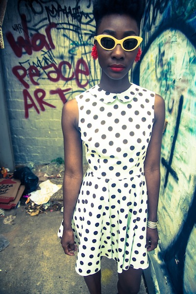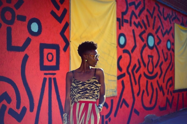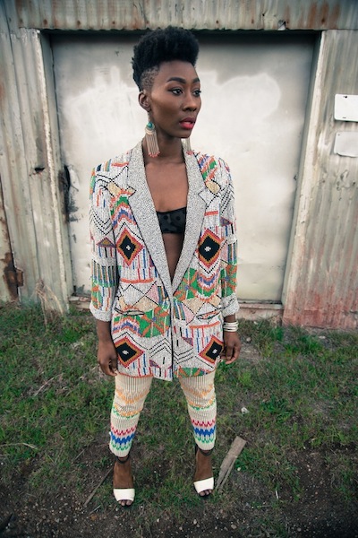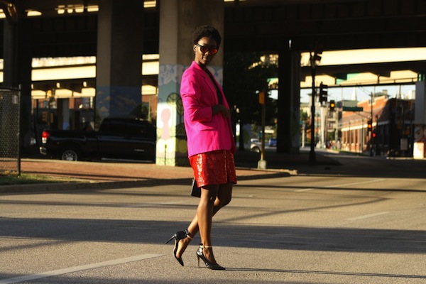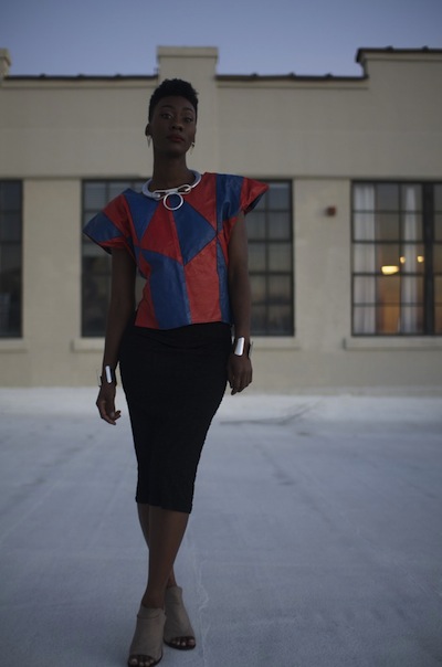 D: I actually don’t have a real closet right now. Most of my clothes are on clothing racks. I am moving and can’t wait to get a real closet again. My favorite pieces that are getting some rotation are: My Loeffler Randal Tamsin Pumps that I just recently bought at my store, Tenoversix. They have this tribal pattern by Tucker that I can pretty much wear with anything and are so comfortable. I have this vintage silk bomber jacket with gold stars that I would wear with everything if I could. I also have this vintage blazer that I got from Lulu B’s. It has a trompe l’oeil Kente print on it. I would say 80% of my closet is made of prints.