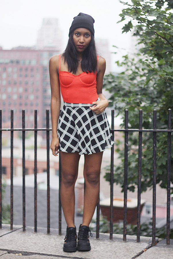 M: If I want to be on time in the morning, my process starts the night before! I start with picking one piece I want to style around–usually a statement top or bottom and on occasion a piece of jewelry or new shoes or something I have yet to wear. Then I figure out what proportions the outfit needs to look finished. If it’s a fitted crop top, I often pair it with something loose or if its a short dress I might pair it with combat boots. I don’t have a strict AM or PM wardrobe…it all mixes together for any time of day and how you accessorize it decides on it being time-of-day appropriate. Usually I can go out in what I was wearing earlier in the day and not look strange. Lastly, jewelry is usually an afterthought for me.