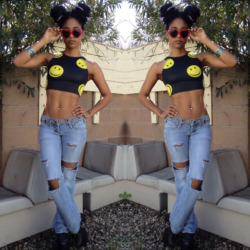 R: Just be free!! Forget about what other people think you should look like, dress like, or act like. It’s not their life it’s yours. I used to care so much and I was really unhappy and I wouldn’t wear the things I liked because other people didn’t like them. HAAA!! I laugh in the old Robyn’s face now!!! Nowadays, if I like it…it’s mine!!! I’m wearing it…and you’re gonna love it!! And guess what, I think that actually works….cause I know I look soooo tacky and out of line sometimes…..but I get nothing but love for it!! Style Philosophy: DO YOU!!