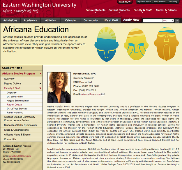 Rachel Dolezal, president of the Spokane Washington chapter of the NAACP and Africana Studies professor at Eastern Washington University, has been passing herself off as a black woman… for years. The elaborate lie includes public claims that she has a black father, black sons, natural hair, and has been the victim of hate crimes.