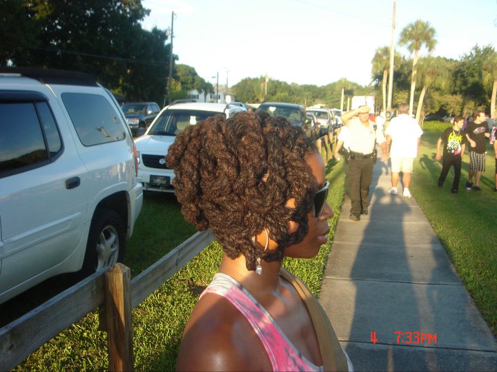 B: I made the decision to go natural because I came to the realization that my hair in its natural state was more beautiful than what I had been rocking. I transitioned 9 years ago. I started wearing my hair in braids. I did that for a couple of months until i decided to cut it all off! I rocked a short curly do for a month & then finally I loced it up.