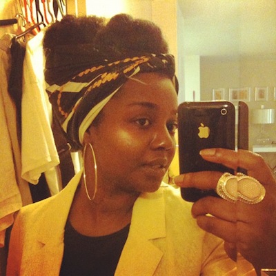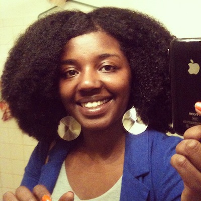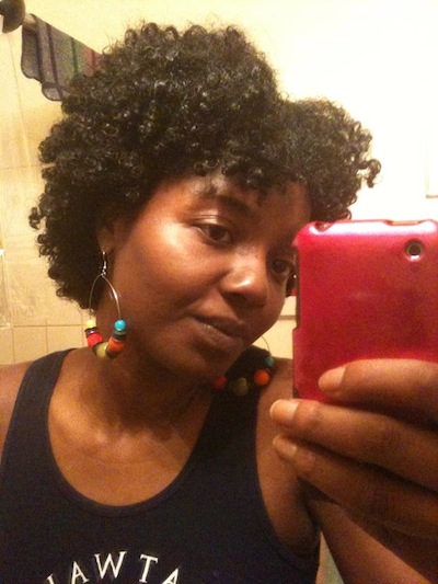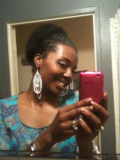 C: It depends on what style I’m doing. If I’m wearing it in a fro and I want some “hang-time,” I will leave it in twists until it dries. Then I’ll take it down and finger comb the definition out (from the twists). If it’s a loose style with curl definition, sometimes I will do twists (as mentioned before) and sometimes I’ll blow dry the roots (lightly using the tension method). I’ve also tried banding, but it can get tricky. I’ve learned that doing that too often can lead to breakage where the bands meet your hair. My real goal is to grow long enough hair where I won’t have to worry about shrinkage LOL.