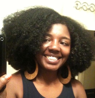 C: I start my wash day by shampooing and conditioning. Right now, I’m using Suave Professionals Almond & Shea Butter Shampoo and Conditioner. My favorite has been Giovanni’s Triple Treat Shampoo and their 50/50 Balancing Conditioner. If my hair needs deep conditioning, I will usually add either honey or aloe vera juice topped with some type of oil (either castor or olive) to my regular conditioner. If I have it, I’ll use Shea Moisture’s Deep Treatment Masque. While the conditioner is in my hair (and I’m still in the shower), I detangle with a wide tooth comb. Occasionally, I’ll use a detangling brush (I shed a lot more than the average person). Next to last, I rinse and use either Tresemme Naturals Nourishing Moisture Conditioner or Kinky Curly Knot Today as my leave-in. I also love Giovanni Direct Leave-in Conditioner. Finally, I proceed to style as stated before.