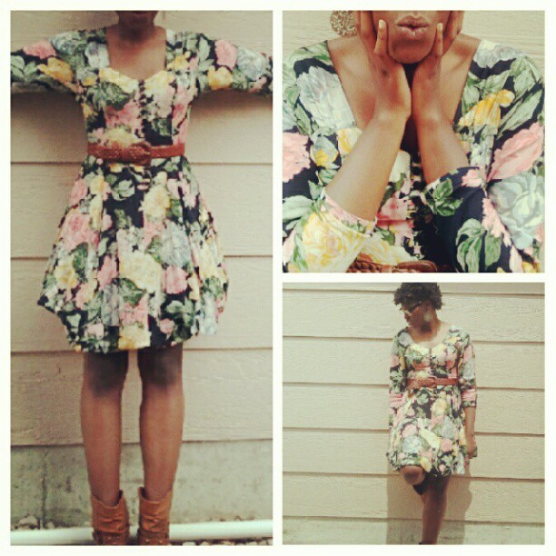 Aw man. Everything! If I had to decide I would say my mustard yellow scarf. I love it because I can wear it around my neck –naturally– but I can also rock it as a turban with pretty much anything. My second favorite item in my closet is my floral dress that I bought from the Arc. It’s wonderful because with the help of tape and safety pins I can change the length of the dress and essentially have several dresses in one –it’s wonderful! Lastly, I am in love with my cowboy boots. They are old and rugged with scuffs and a hole in the bottom, but I can’t let them go.
