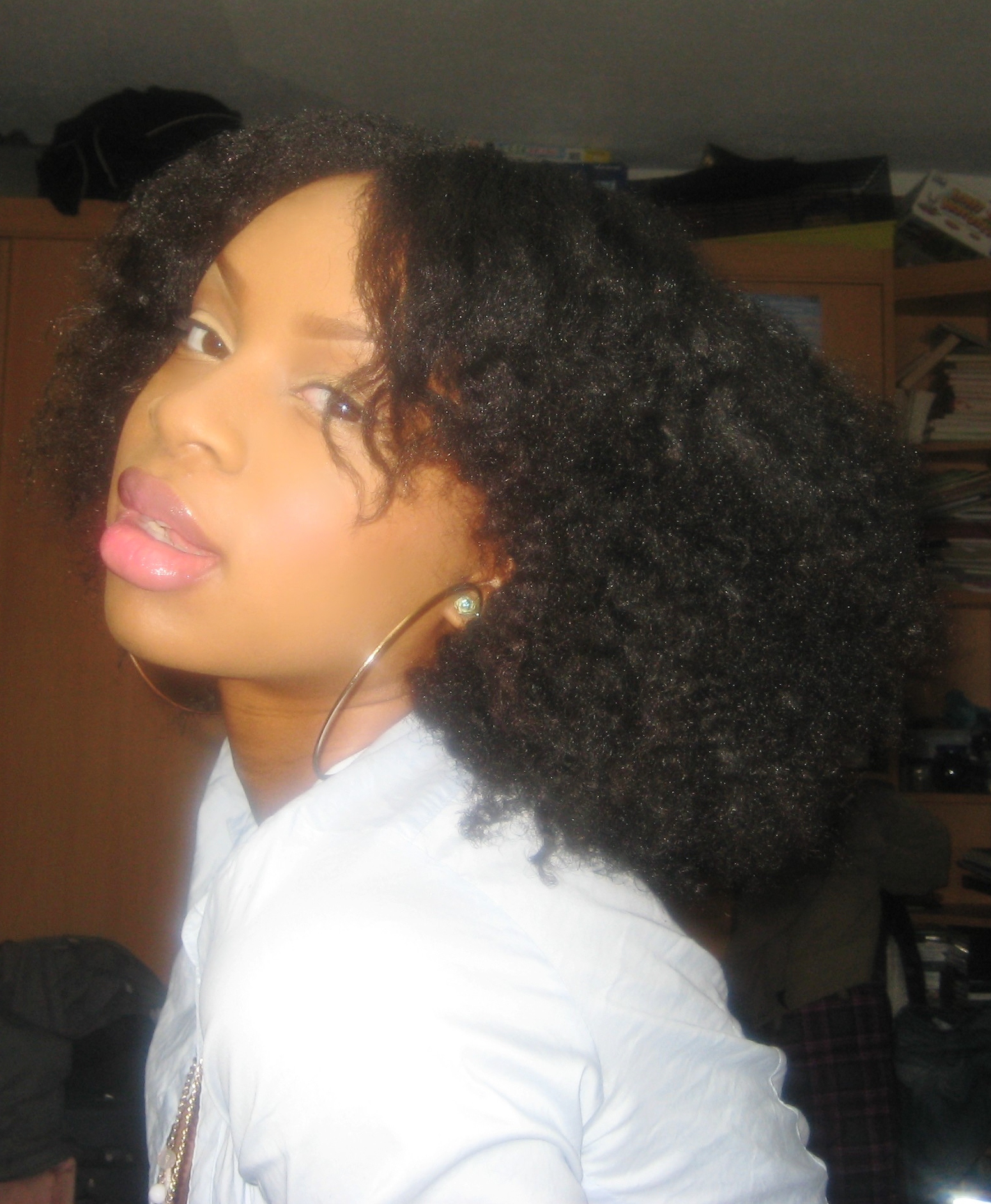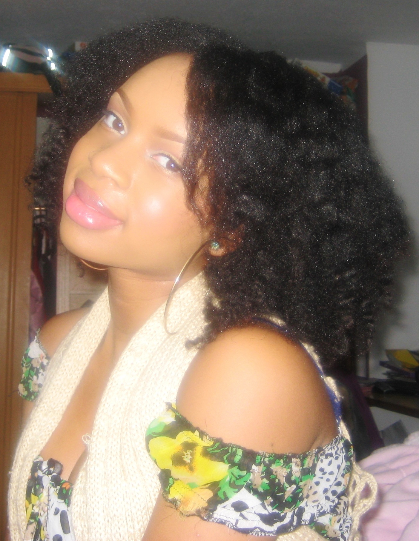 C: I’ve been natural for about 1 year and 6 months after transitioning for 10 months. I always liked wearing my real hair out even when I was relaxed, but i grow up seeing every black girl wearing extensions so I thought I also had to wear extensions. One day I found a YouTube video with this lady wearing her natural hair and I loved it so much that I decided to go natural no matter what it took. I never looked back.