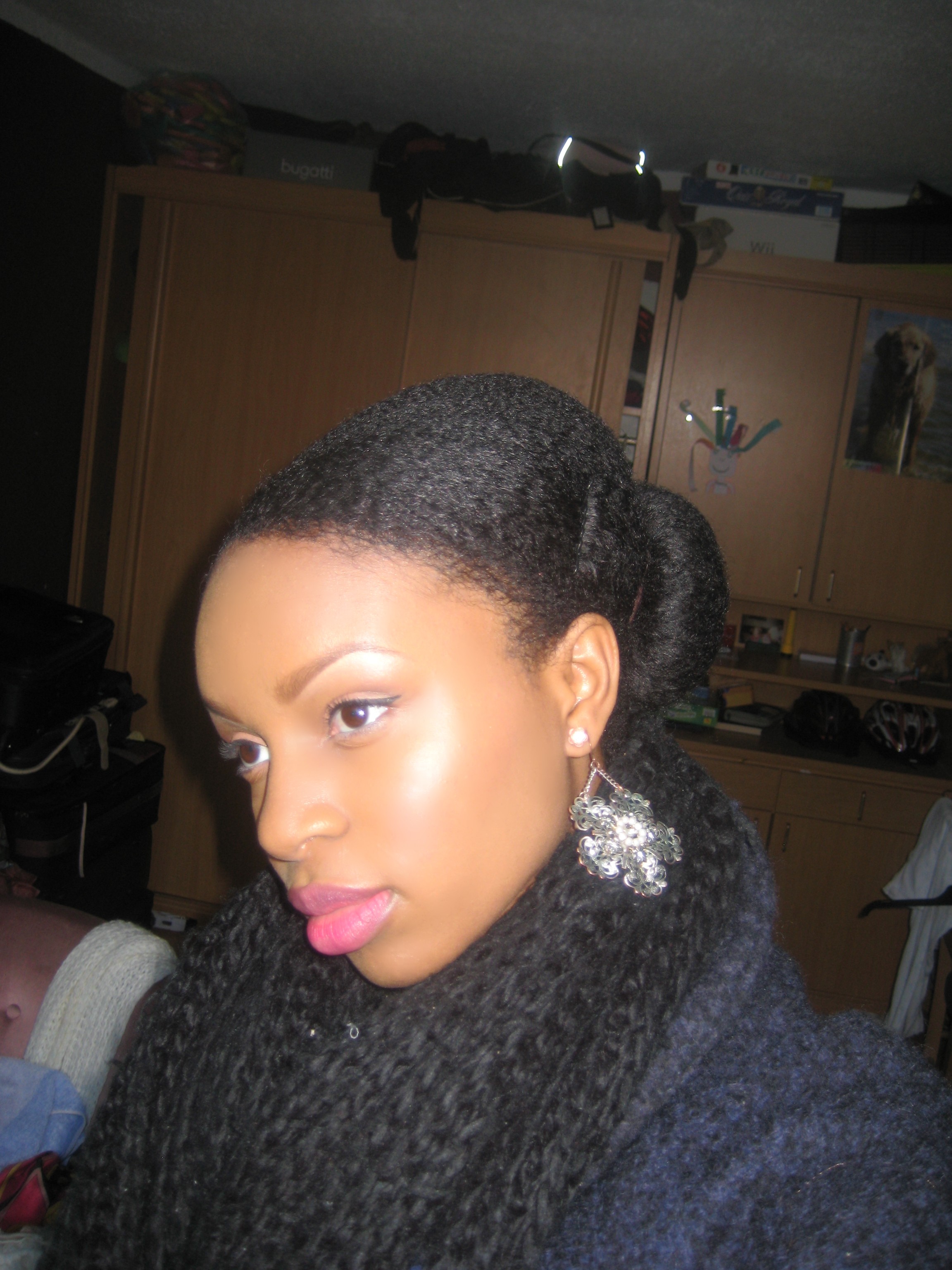 C: I wash my hair once every week or sometimes every two weeks. I deep condition every time I wash my hair with Garnier Fructis Oil Repair deep conditioner or Dove Total Repair mixed with olive oil and honey, this mix works wonders. Then I do a twist out or braid out. In winter I often wear protective hairstyles because I’m too lazy to do a lot to my hair and because of school.