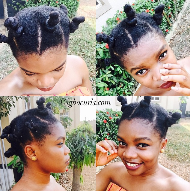 Beautiful girl, beautiful hair. So cute with the Bantu knots. And those twists are spook thick.