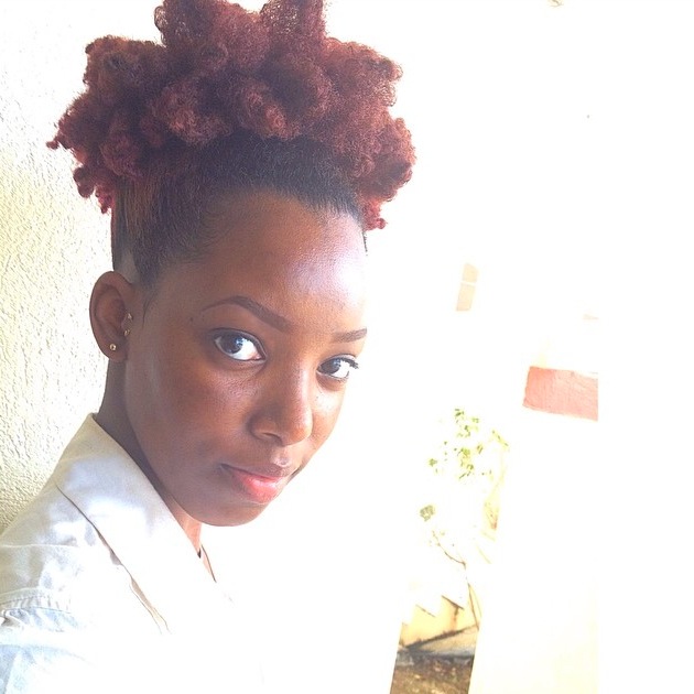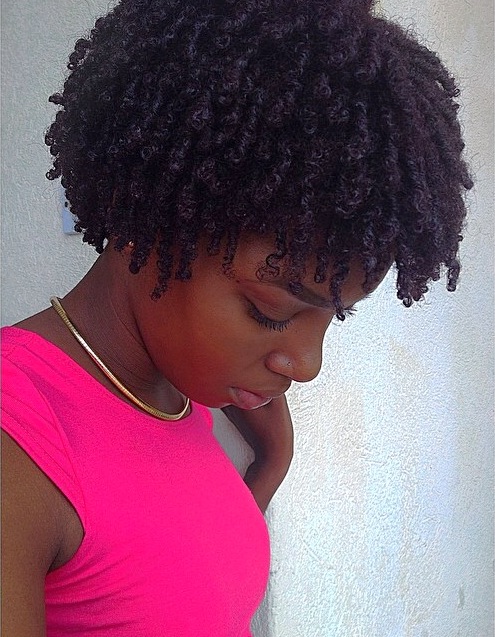 C: I’ve found that if I don’t stick to a routine, my hair becomes unruly so I shampoo once a month, cowash weekly and deep condition twice a month. Since I’m not allowed to wear a fro at work, plus the climate dries it out superfast when my hair is open, I wear 2 strand twists in updos or just down during the weekdays and sometimes experiment on weekends with other styles. I use my homemade whipped shea butter, olive oil/Cantu Argan Oil Leave-In Conditioning Repair Cream and Eco Styler gel the most.