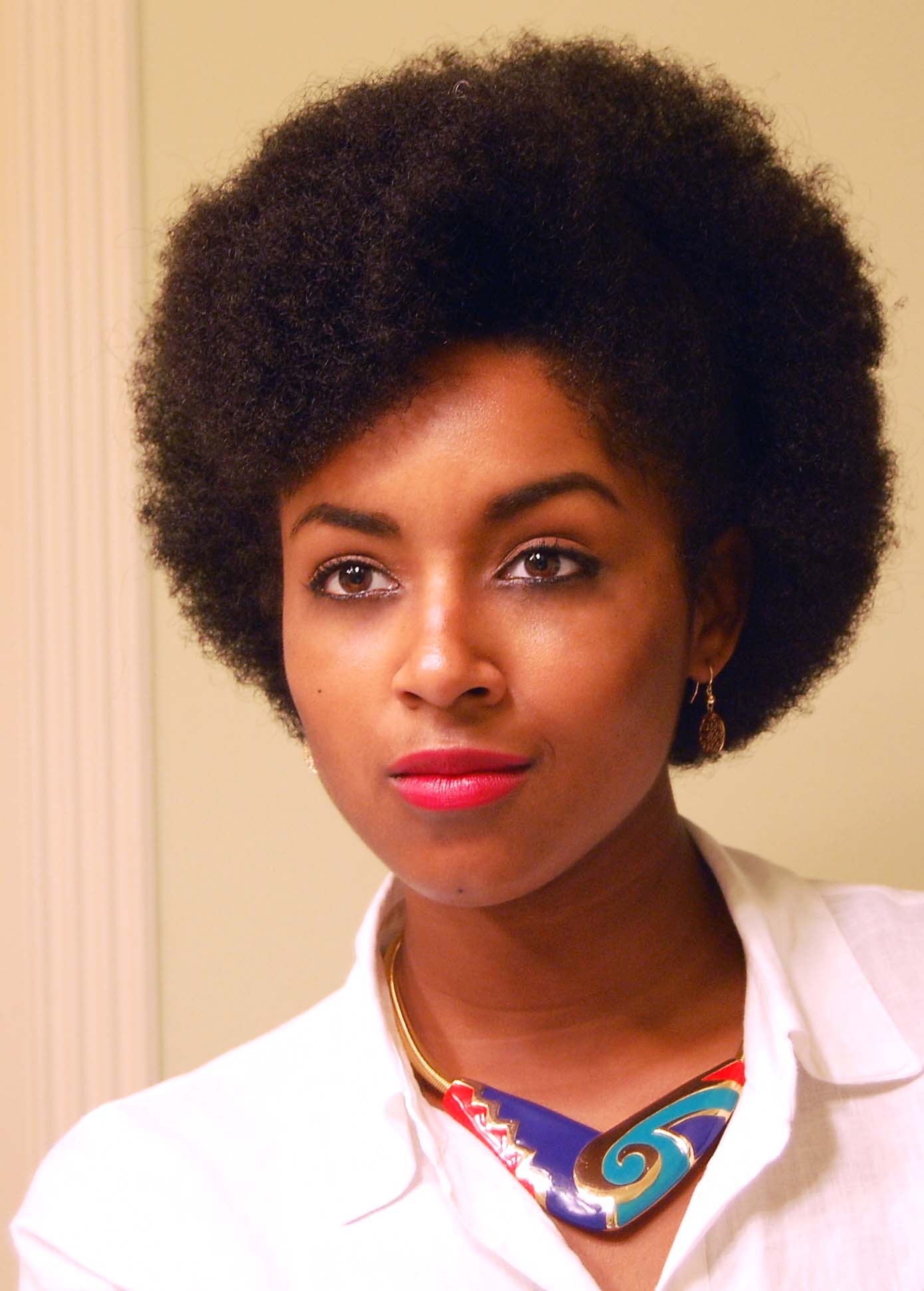 She is really beautiful no matter what hairstyle..but the fro makes her look stunning.