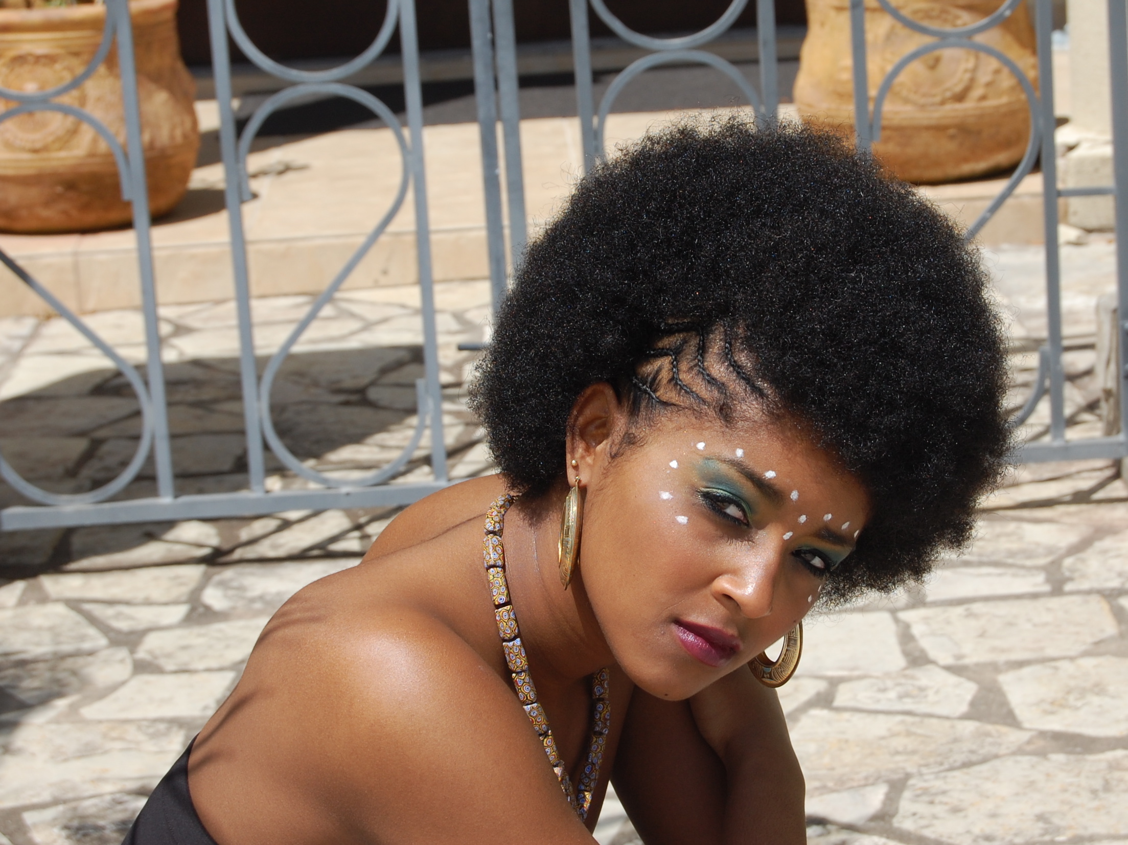 You photo so well, such a stunning face. Love your fros.