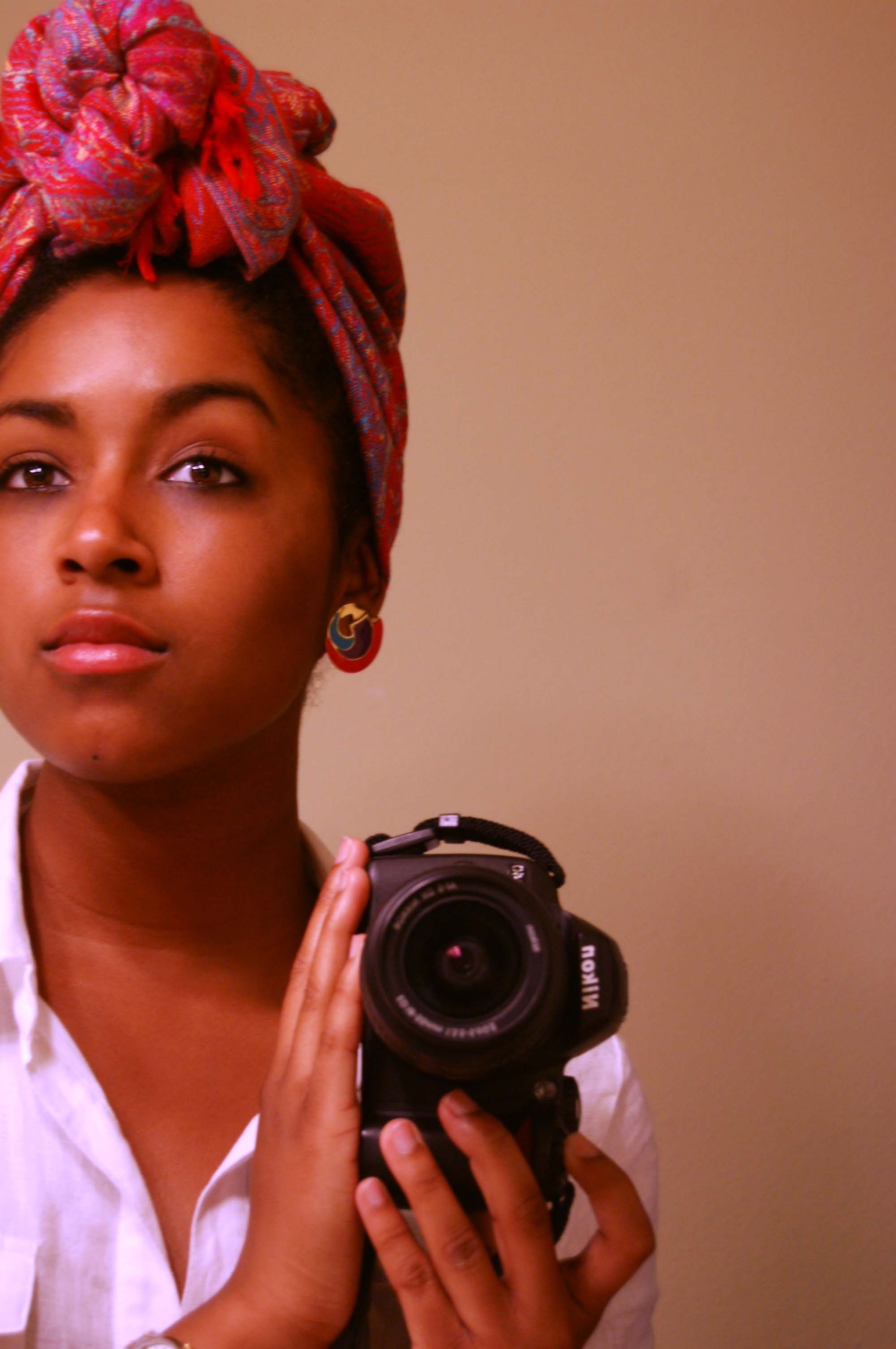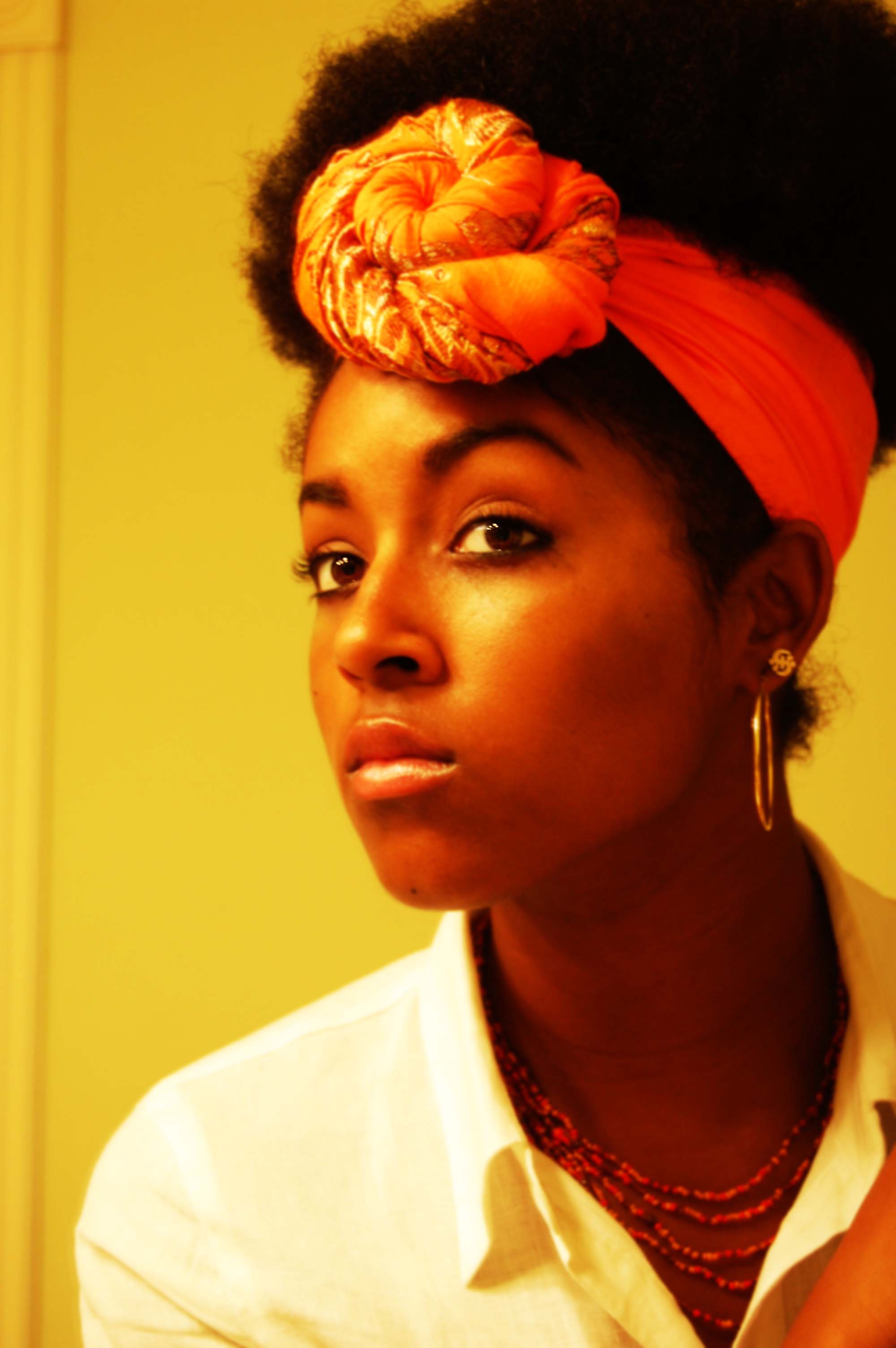 I can see why she gets ‘vintage’ comments. She really reminds me of a young Pam Grier. I am loving the scarf affairs in these pics. Beautiful!
