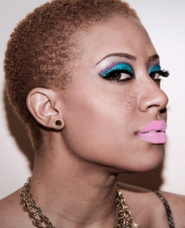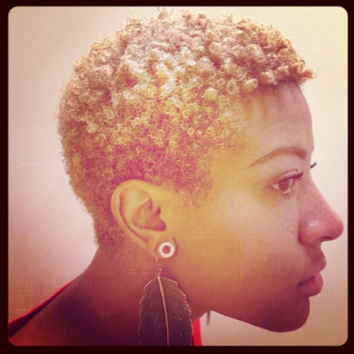 D: I alternate between homemade products like shealoe and herbal infused oils and Kinky Curly Products. Even though it’s very short, I like to keep my hair and scalp moisturized, as color is very drying.