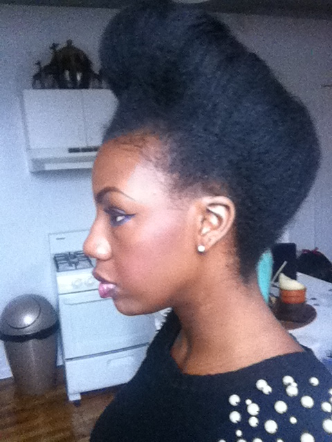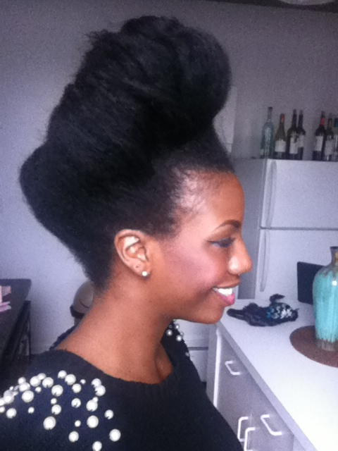 D: After coming to Chicago I was stretching my perms for 2 months or longer because I didn’t know any quality hair stylists in Chicago. January 2011 was my last perm. In the beginning I was mostly wearing my own hair straight with weaves or bantu knot-outs in the spring and summer and a weave in the fall. January 2012 I decided to start trying different styles that accentuated my natural texture. These styles have consisted of twist outs, flat twist outs, curler sets, and protective updos.