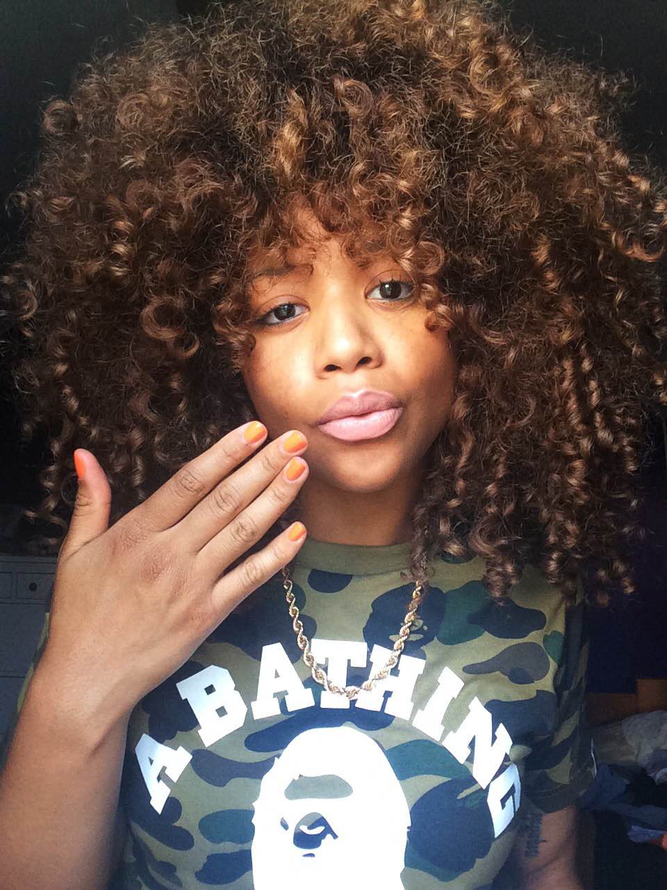 F: I usually do a lot of wash and gos and for days when I want a little volume I will diffuse. I rotate products so currently I am using Dark & Lovely’s Anti- Breakage Hair Butter and Coconut Oil. I do a lot of buns because my job requires me to wear my hair up, and out of my face so to prevent any damage I do loose low buns and bobby pin my bangs.