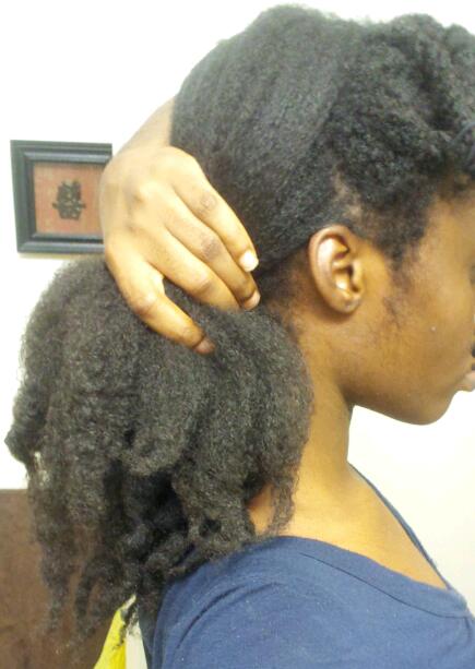 G: I rarely do twist outs because they often leave my roots in a mesh of tangles. I also refrain from unnecessary manipulation from tools, like combs and brushes. Most of my hairstyles are done without their aid, because I’ve found out that my hair fares better, (less mid strand splits and breakage), when I seriously minimize their use.