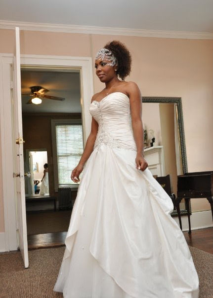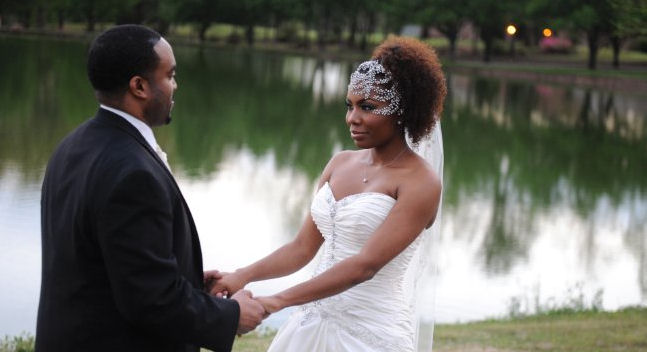 H: It never occurred to me to wear my natural hair. I just thought it wouldn’t be pretty or elegant enough…sad but true. I was going to either straighten it or wear a weave. As a recovering weaveaholic (lol), I was leaning more towards the weave. But in the back of mind, something about covering or taming my natural hair just didn’t feel right. I felt like a hypocrite. Here I was claiming to love my hair in it’s natural state, yet I didn’t feel like it was “good enough” to wear on my special day. Now don’t get me wrong, I still believe it’s okay to be versatile (weave, straighten, etc..) but I knew I still had some unresolved issues about my natural hair that I needed to come to grips with.