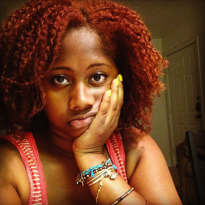 I: Well, wash days occur every two weeks. Since my hair is now color treated I use Quantum’s Riveting Reds Shampoo and Conditioner to keep my color refreshed. Before I used Giovanni Smooth As Silk Shampoo and Conditioner. After I shampoo and condition, I detangle my hair in 6 sections with Cantu Leave-In Conditioning Repair Cream. I’ve only used that for a month and I love it! I used to use Giovanni Direct Leave-In Conditioner. Once I detangle, I plait each of my sections, which serves multiple purposes. Not only does it keep my hair detangled, I stretches my hair a little.
