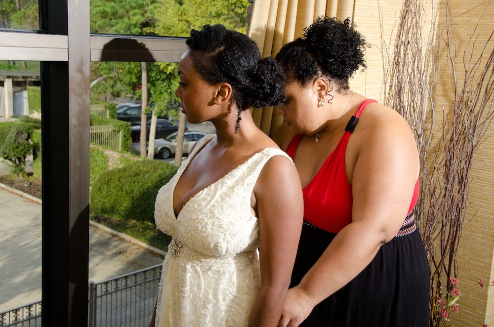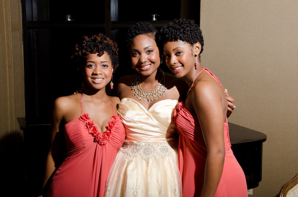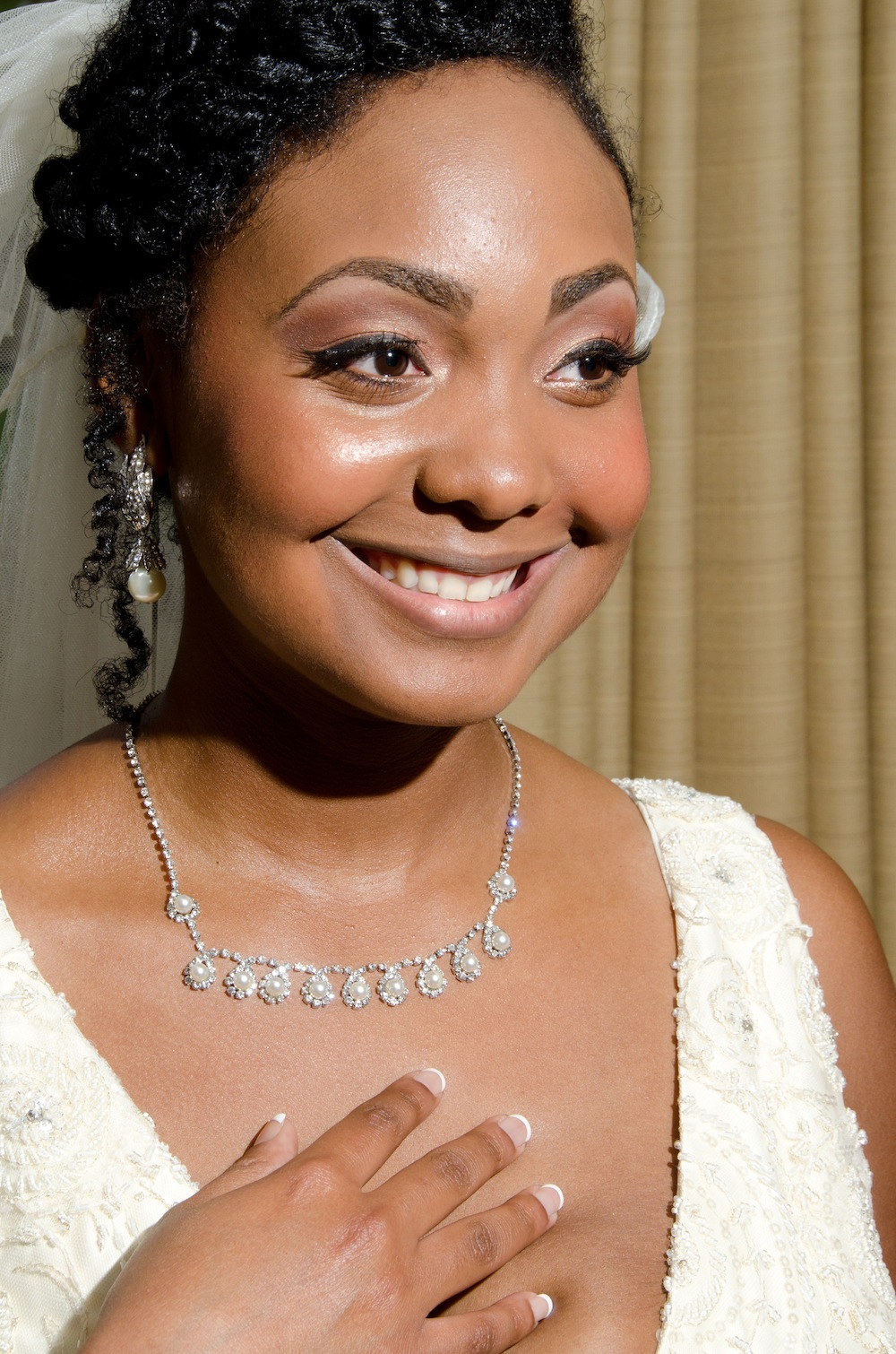 I: I wore my hair in what I would like to call a Romantic Textured Bun. The theme of my wedding was romance, but I still wanted to show the texture of my natural hair. I twisted my hair first and then set it with flexi-rods and styled it in a low bun.