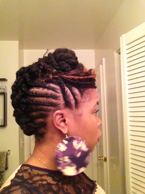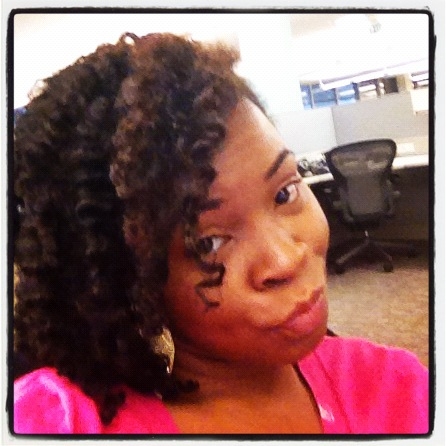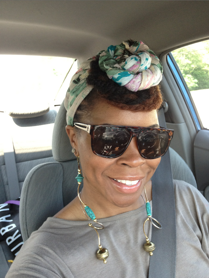J: My regimen consists of weekly 8 hour deep conditioning session with Shea Moisture deep treatment masque and co washing with Tresemme Naturals . I rarely use shampoo unless I have a lot of buildup. Every week after I pamper it with the DC, I alternate between twist outs and up dos. When I wear my twist outs, I rock that during the work week and then on the weekend I make it either funky or edgy. I put in a high wild bun, braided head band, or I just throw on a dope turban.
