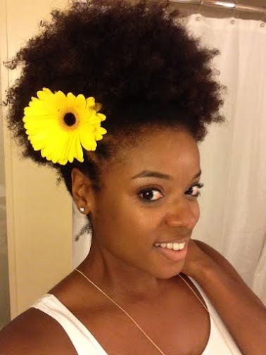 I am happy to see another 4c. There’s not that many 4c’s. My hair is tightly coiled too and My mom has to style it before it gets dry. I like your outfit in photo 4 and your yellow rose on the side.