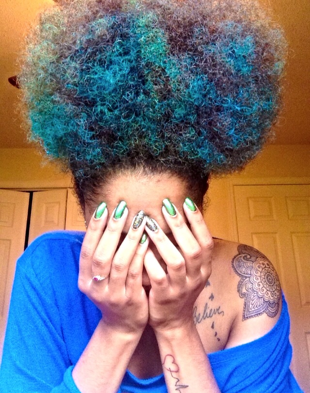 I added some blue/green color to my puff a little while back using a temporary hair cream but hated how dry it made my hair feel. I think I’ll try out hair-shadowing next.