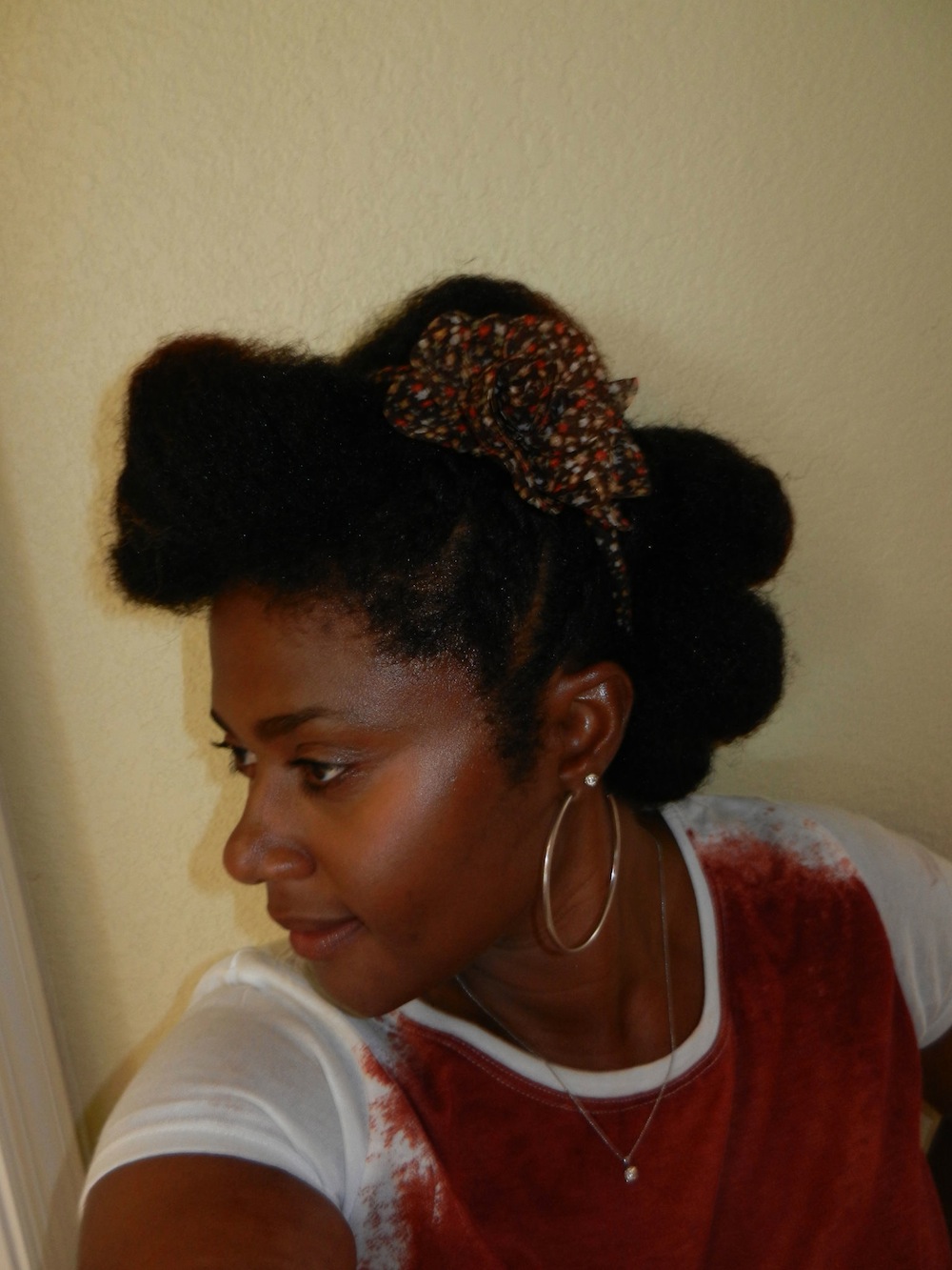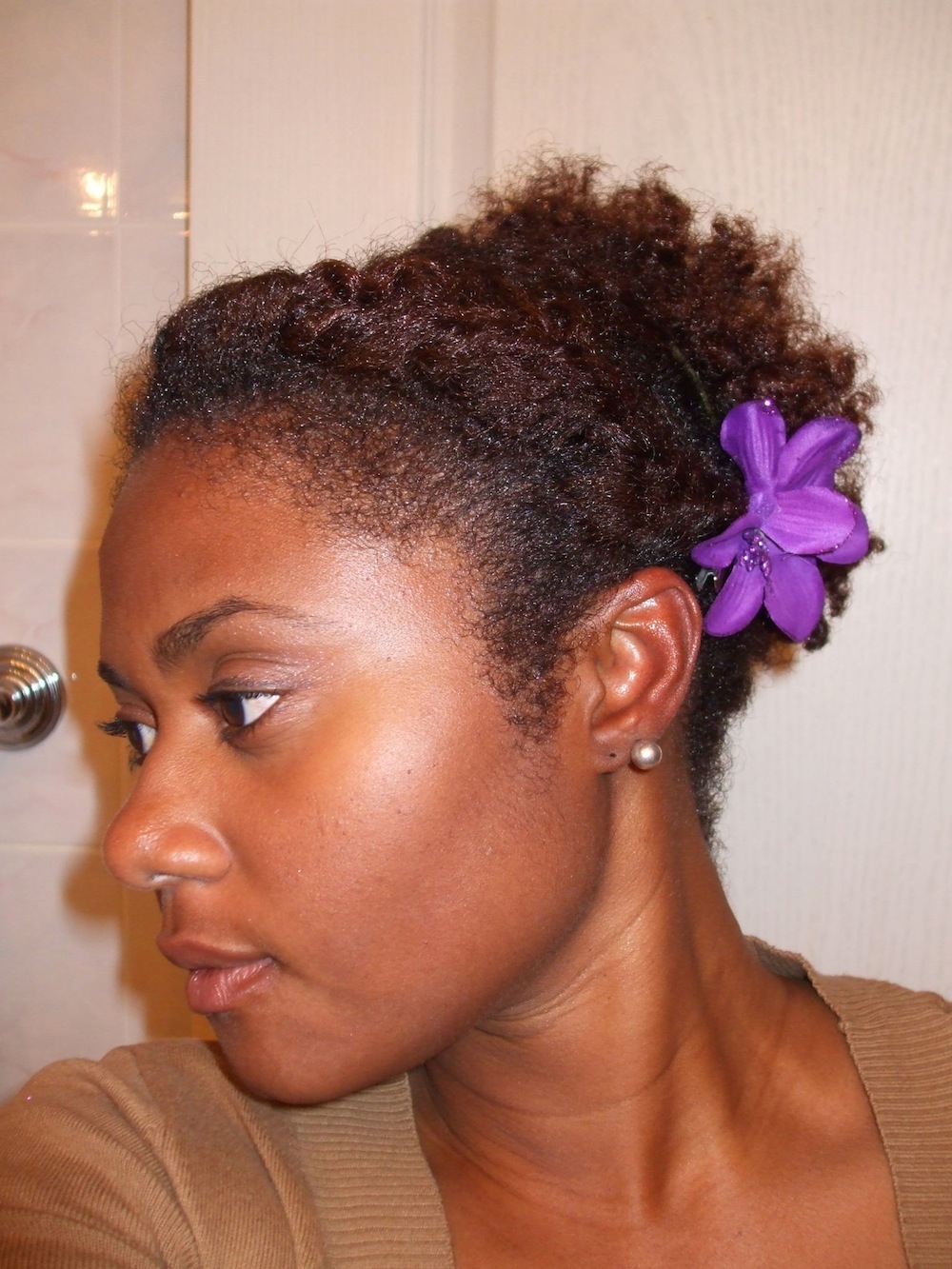 K: I think I may have transitioned for about 2 months if that much, and then did a big chop 18 months ago (October 2010). I had about 2 inches of natural hair!