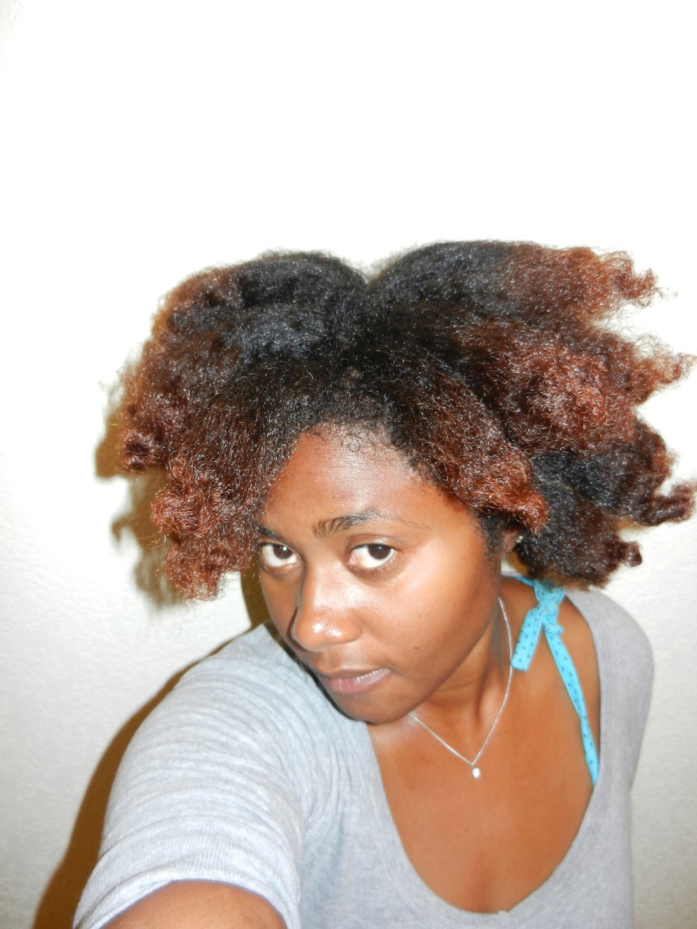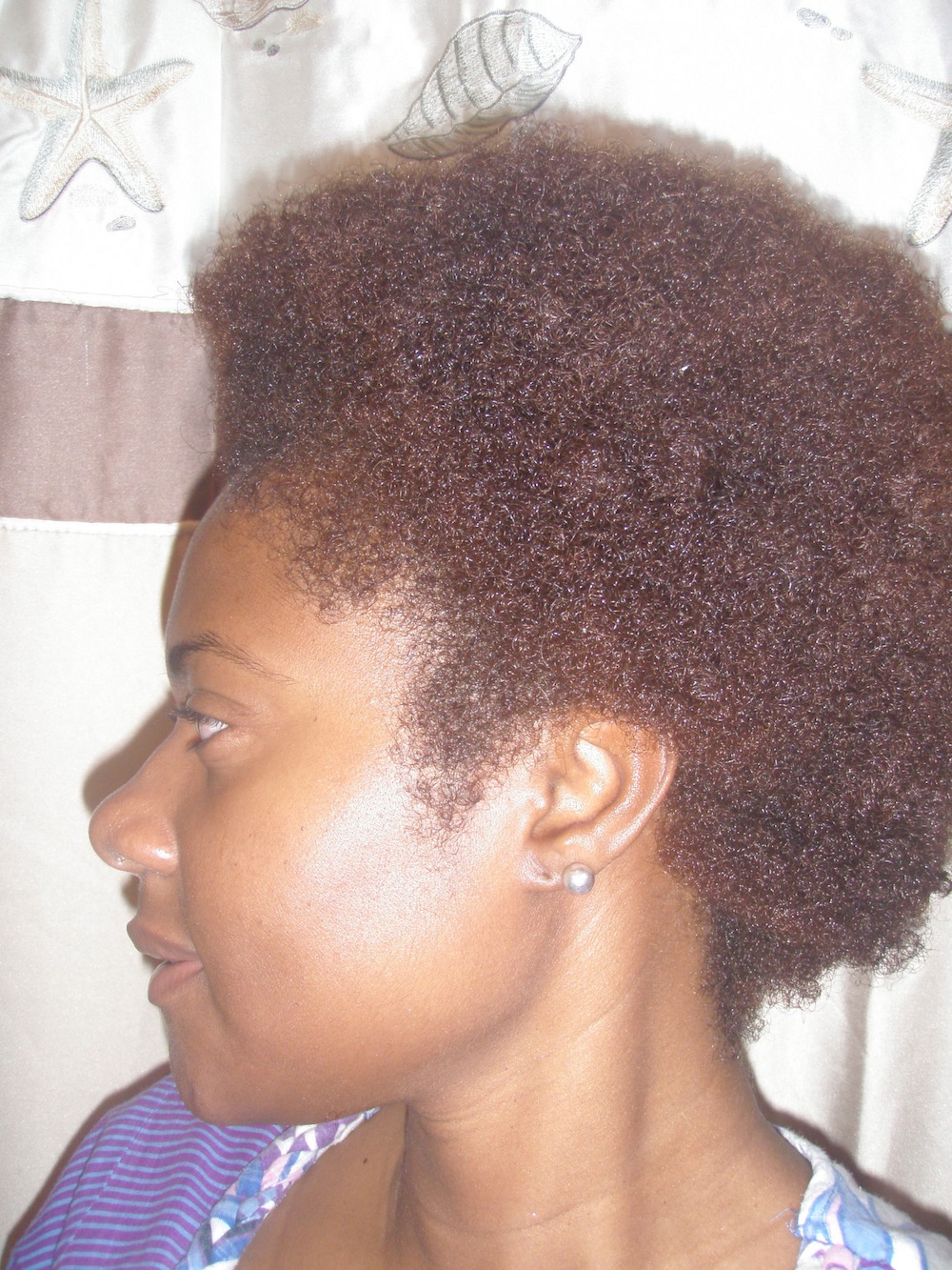 K: My hair is thick, coarse, very kinky in places and looser coils in others and absolutely beautiful!