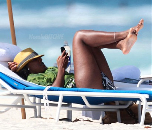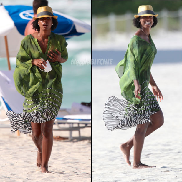 Kelly Rowland, whose make-up free face was just featured on People Magazine’s 100 Most Beautiful people list, was spotted on the beach in Miami rocking her natural curls under a sunhat. Her hair is so cute and we hope to see her rock it natural more often! All photos are courtesy of NecoleBitchie.com.
