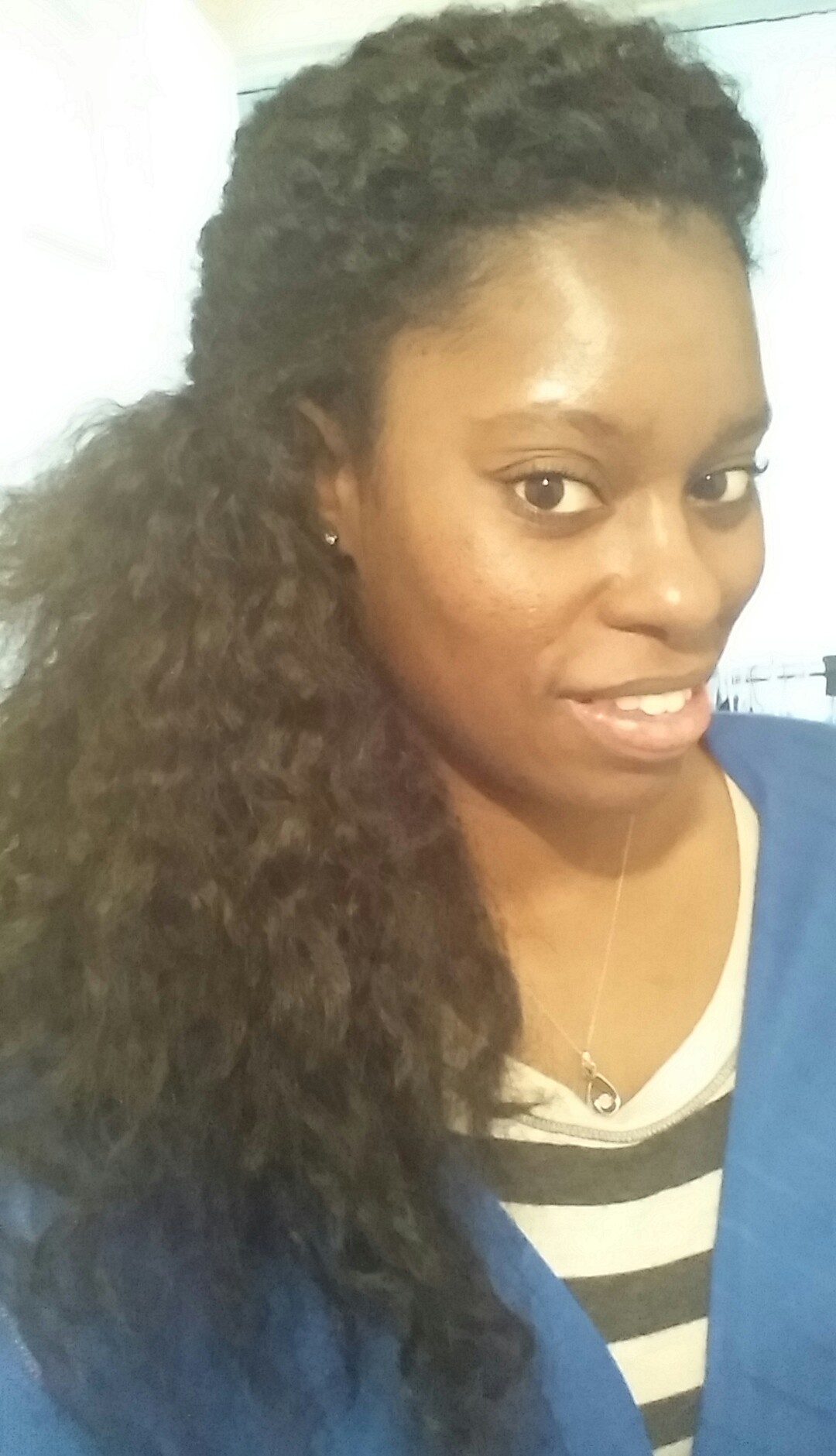 K: Wash day is typically a 2-3 hour process depending on what my hair needs at the moment. Now that I’ve changed my routine to once a month instead of every 2 weeks(which will probably go back to every 2 weeks with it getting warm), I usually shampoo, deep condition, and condition, followed up with whatever style I decide on. My favorite of all times is 2 strand twists probably because I can wear them in a bun, down or in an updo. As far as shampoos go, I like As I Am Curl Clarify Shampoo and Suave Rosemary Mint Shampoo. For regular or deep conditioning, I use either Aussie 3 Minute Miracle Moist, Suave Almond and Shea Butter Conditioner, or John Frieda Dry Scalp Hydrate and Nourish Conditioner. For my leave-ins, I like As I Am Leave-in Conditioner and Aussie. To style, I like Eden BodyWorks Coconut Shea Curl Defining Crème and Sereniti Bath Body and You Hair and Body Icing.