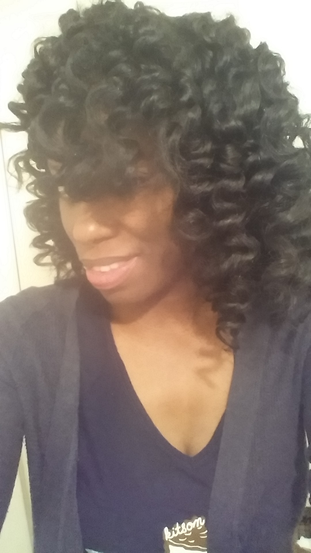 K: I honestly don’t know my hair type by the number chart/hair chart. My hair has different textures all over. It’s thick and curly. My hair behaves better when I do less to it. I’ve cut back on using a lot of different products and used what I know works. I still try new products but I’ve cut back on being a product junkie for sure.