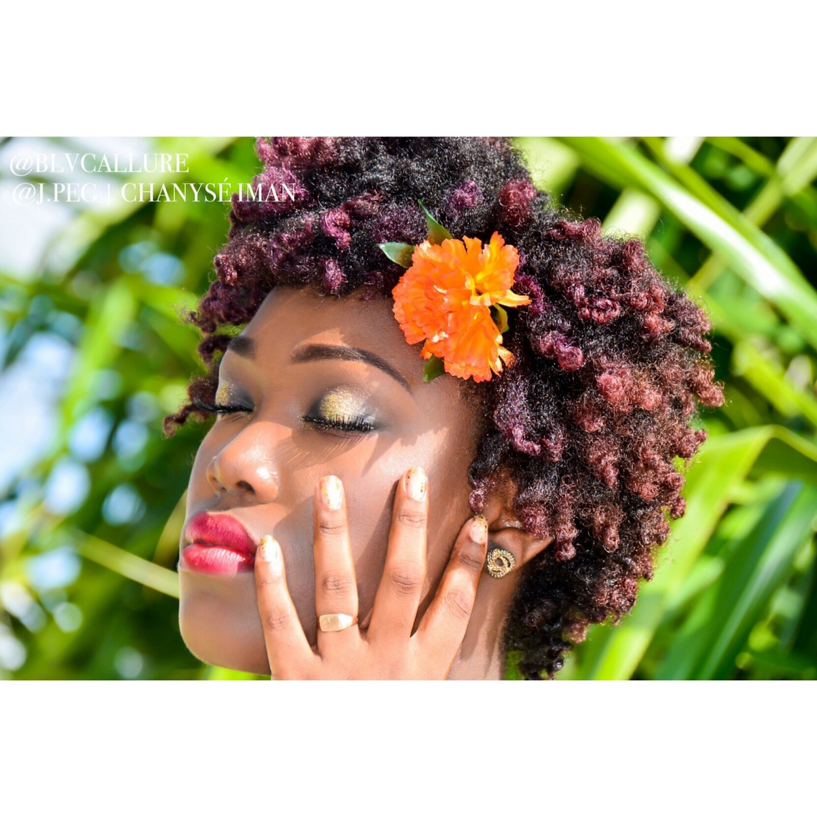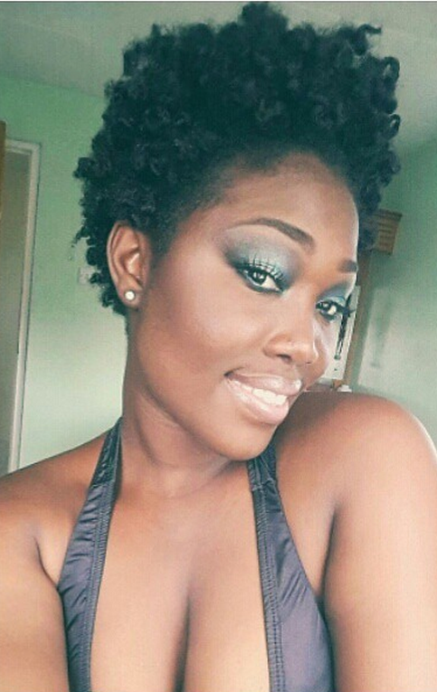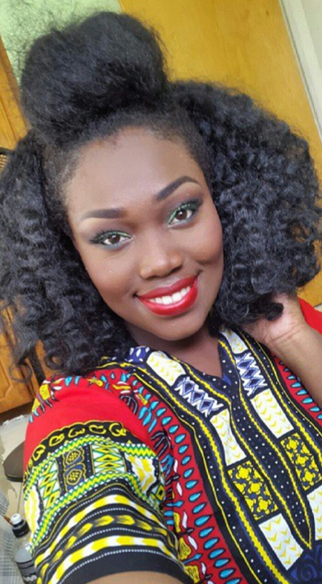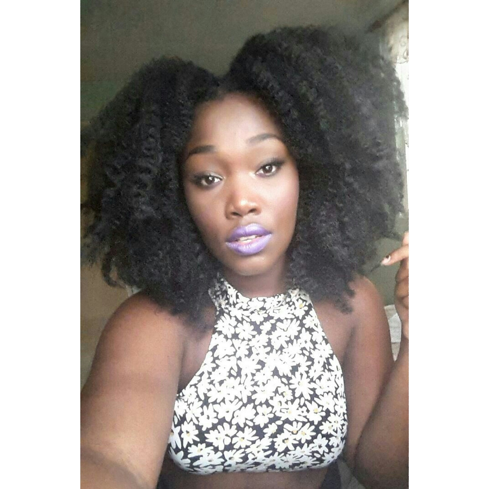K: Well, this month has been quite busy with my natural hair and makeup business taking off and such. I’ve been doing mostly a protective style like crochet braids, or a finger coil or high puff when I’m wearing my own hair. I use the Eco Styler Crystal Clear Gel and a shea butter mix (just coconut oil, olive oil and castor oil with the butter) to keep it moisturized.