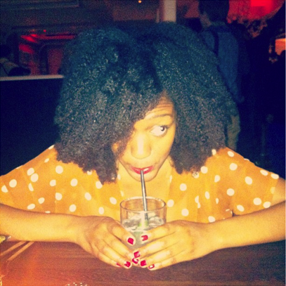 I might try the shampoo in the bottle thing (finally). Her hair reminds me of my own, except hers looks like it might be thicker. I like the twa pic and the pic with her sipping on that drink.