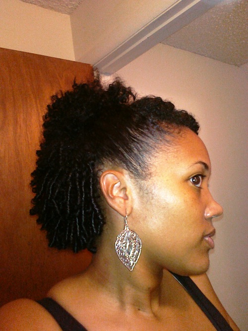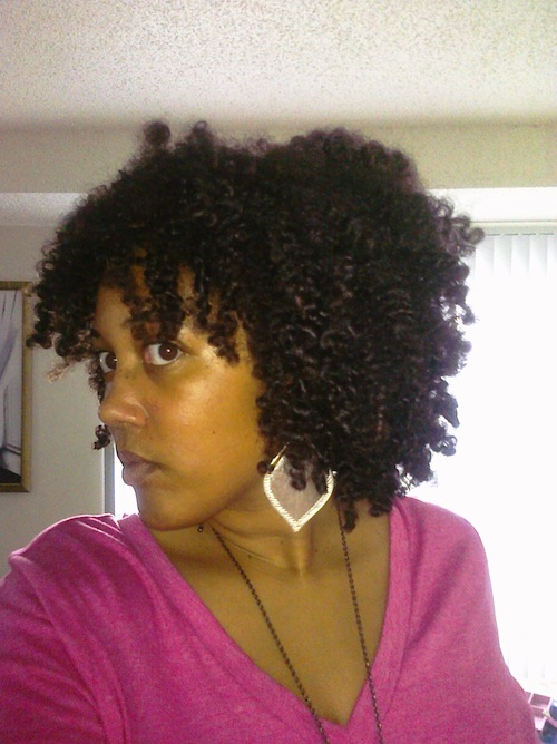M: I really don’t have a set routine that I follow every month. I pretty much wash when needed, then style according to how I feel at the time. If I am short on time, but really need to wash, I will do a wash and go for the day. For those I use Herbal Essences Hello Hydration or Bee Mine Luscious Moisturizer as leave-ins, then that night I will dry twist and rock a twist out for the week. Otherwise, I wash and use a combo of Giovanni Direct Leave In and Silk Elements Liquid Styling Gel, and once it’s 80% dry, seal with my pomade and do mini two strand twists, or throw it in 10-12 twists (more or less, depending on how defined I want it). I wear them for a couple days, and twistout for the rest of the week. Twistouts are obviously my favorite style 🙂
