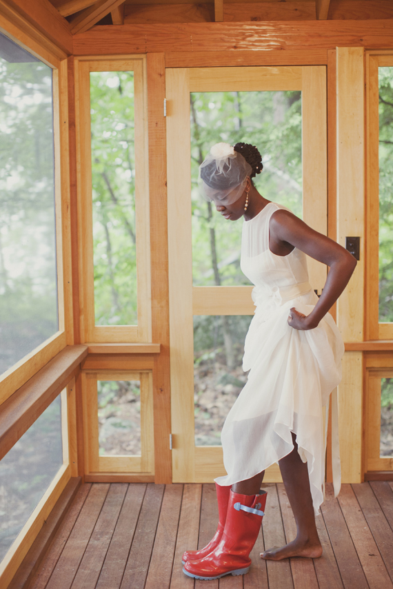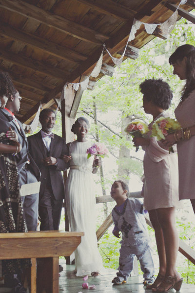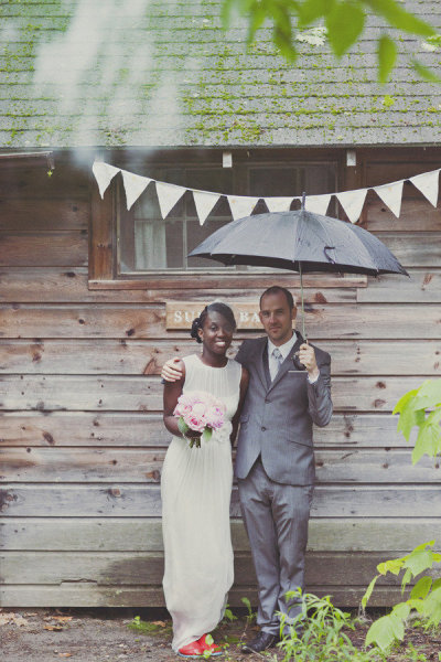 In the middle of the night I was awakened by thunder. It rained and poured most of the night, this mentally prepared me for what my wedding day would be like. It was crazy because just the day before we enjoyed a sunny outdoor picnic. I even swam in the lake with my friends. At breakfast the morning of my wedding many people came up to me and said, don’t worry the rain will clear up. I knew it wouldn’t. My wedding planner had to come up with another solution. We couldn’t risk people getting soaked in the rain. She decided that the porch would be the best solution so that’s what we did. We said our vows on the porch and we were married by my aunt who had flown in from Port-au-Prince, Haiti. I think I really processed the wedding on the fourth day. On Sunday, when everyone had left and I was just sitting in my cabin a rush of tears kept flowing. I was overwhelmed by the promise that I made to my husband, having my friends and family there to bear witness made it that much more powerful. I was overwhelmed with all the good intention we were given. A few months later when we got our photos it was then that I realized how incredibly romantic the fog and rain was.