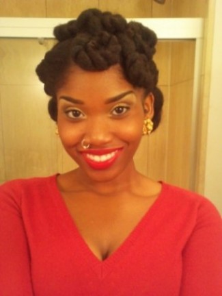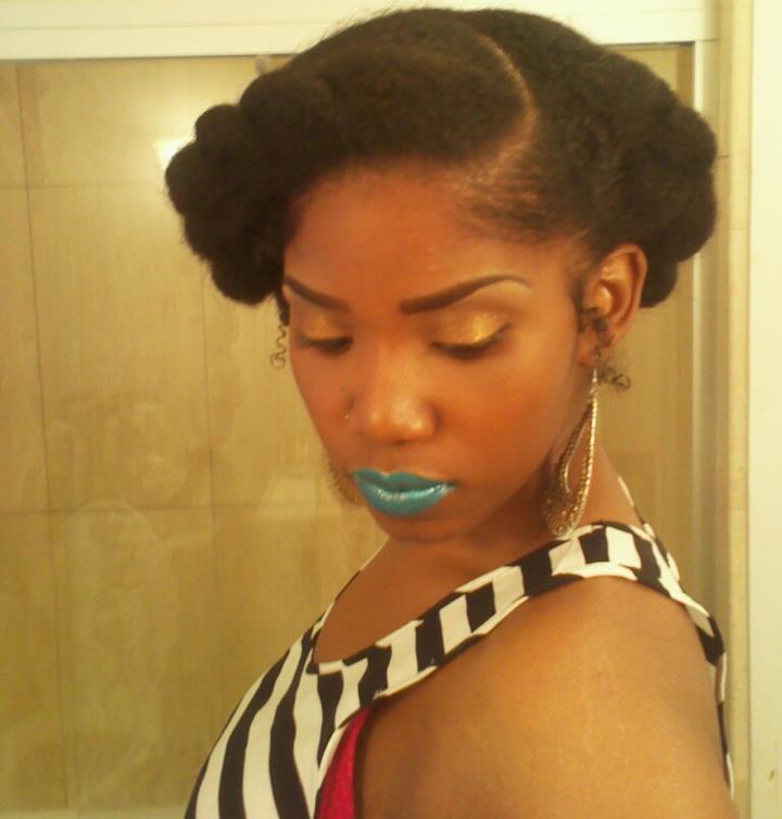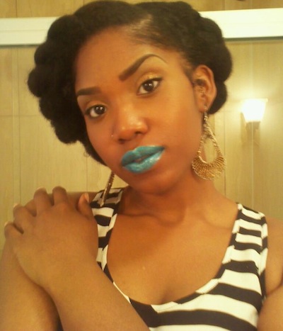 N: I like to keep it simple. Usually I’ll wash my hair on an as needed basis. I usually don’t use shampoo, but just clarify with baking soda and do an apple cider vinegar rinse. I detangle with V05 Moisture Milks Conditioner; it’s my staple product as well as castor oil for my scalp (from the laxative section of the store). I use olive oil, Lustra Silk Curl Max Activator Moisturizer and Long Aid Activator as I moisturize my hair. I use a leave in conditioner (Giovanni / Miss Jessie’s Baby Butter Cream) and plait my hair to stretch it as it air dries. I’m digging Miss Jessie’s Curly Pudding for wash & go’s.