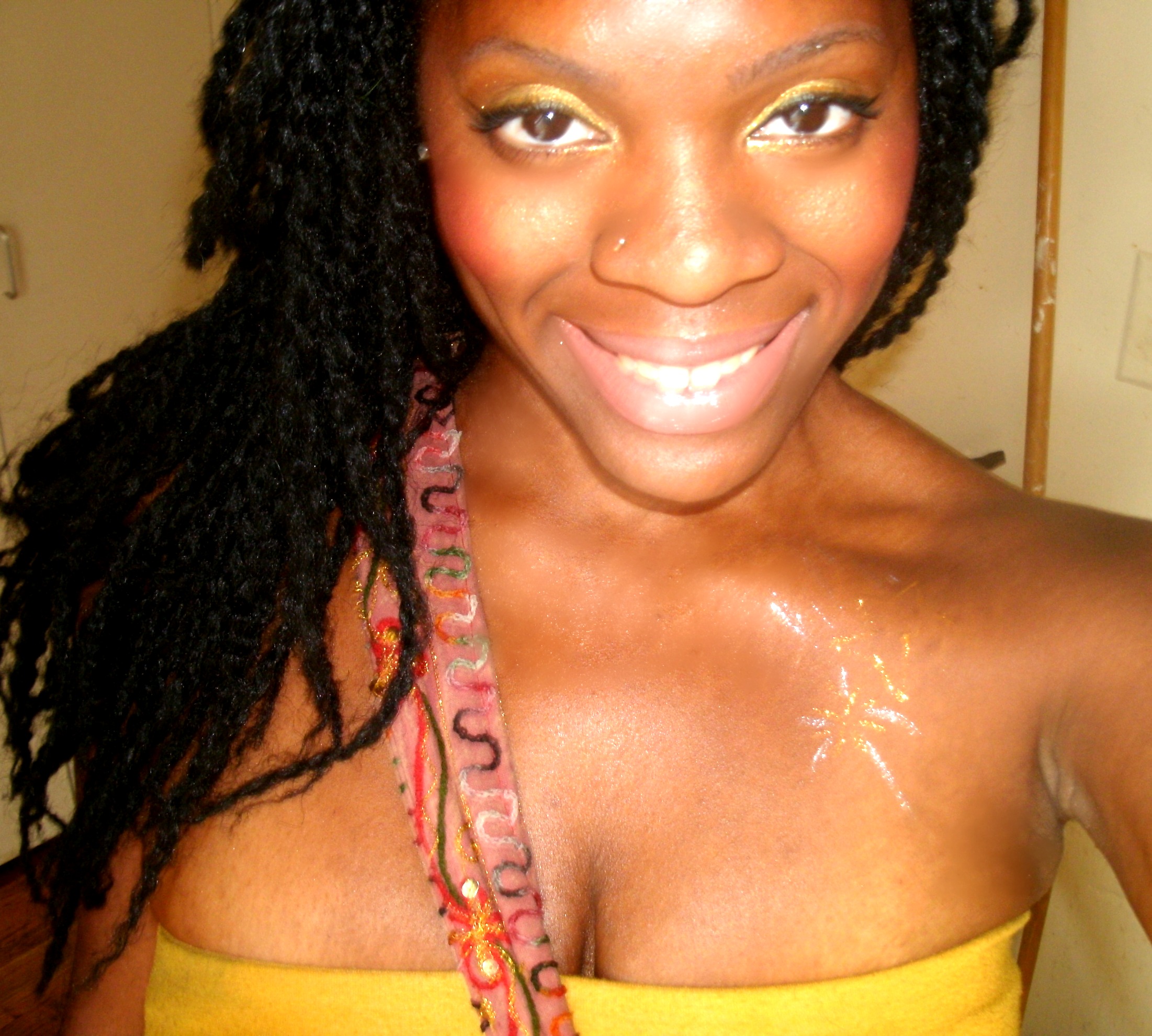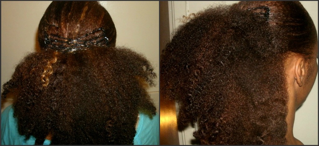 N: In terms of texture, thickness and behavior, my hair has an identity crisis going on lol. The front crown area doesn’t have a curl pattern and has less density. I have to curl it with a spiral iron. It just grows that way. The back and sides on the other hand need NO HELP! I have nice thick straw sized curls. The texture is kinky curly. I have fine delicate strands. I have 14 inches in the back and 12.5 in the front on my last length check in February 2012. I’ve been natural a little over 5 years.