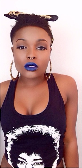 She looks like Janelle Monae. Very pretty. love her make up.