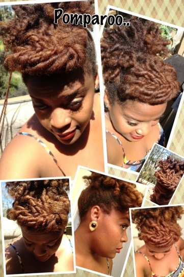 P: I loved, loved, loved twist outs, but after recently giving birth the 10 to 15 minutes it used to take to unravel and fluff my twists now seems like hours. So, a high puff and a little edgy pompadour or pomparoo (my version of a pompadour), and I’m fiercely ready for my day ;o)
