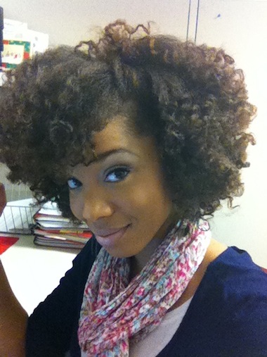 P: One of my favorite things to do for my hair is to give it a break. Yes, it’s great that I have natural hair that can be care free, but even natural hair needs a break. Sometimes during the year I will get a protective style (example: kinky twists, Senegalese twists) so that my hair can have a break from manipulation. My hair responds well to this and it thanks me by growing an inch or two while I have in my twists. I recently started testing the waters with sew-in weaves (full head), so that will probably be my next protective style.