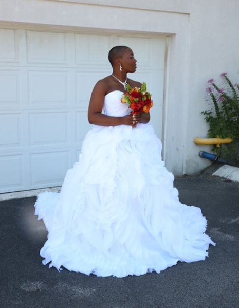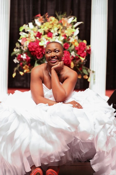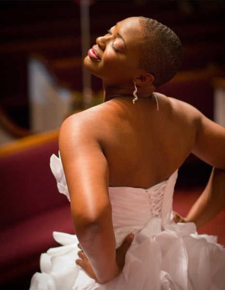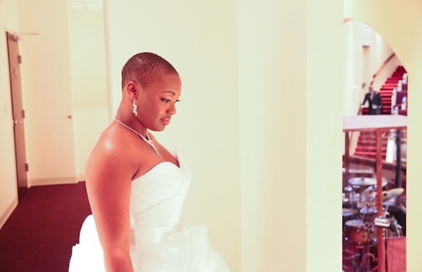 I love the hair and the dress and especially loved the whimsical pic of Precious sitting and engulfed by her gown! I’ve shaved my head 3 times and have loved the look on everyone from Grace Jones to Sinead O’Connor and Me’Shell NdegeOcello and Precious is absolutely beautiful with the cut. Congrats on your wonderful day and thanks so much for sharing with all of us!