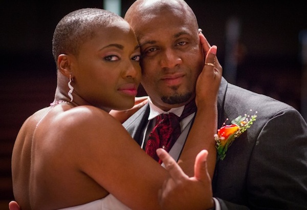 That picture of you alone in the church with your eyes closed and face turned upwards = FIERCE!!! And the picture of you and your husband with both of you looking at the camera is beautiful. Congratulations to both of you!!