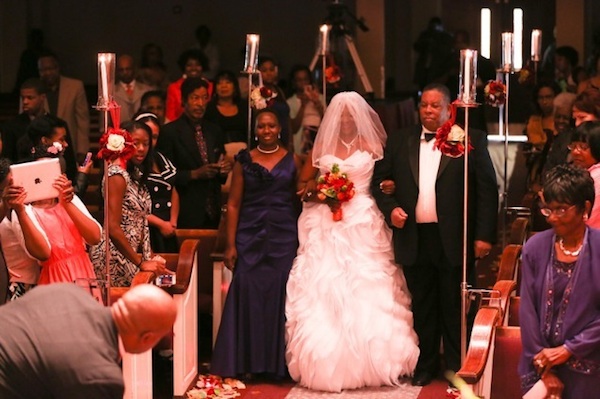 I love the dress…beautiful bride and I love the fact that she kept it natural and didn’t opt for a wig. 🙂