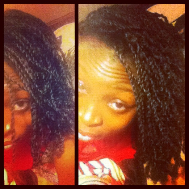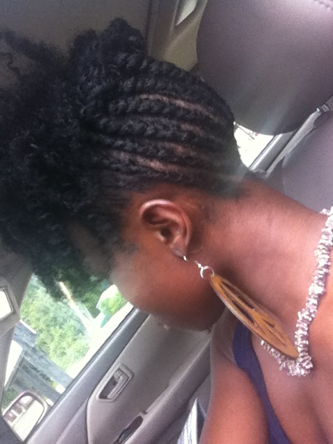 R: Ok! I detangle with my fingers using a cheap conditioner, and extra virgin olive oil. I then cleanse with Terressential Hair Mud Wash, and follow with my deep conditioner mix Aubrey Organics Honey Suckle Rose conditioner/extra virgin olive oil/castor oil/coconut milk. I let that sit for about 2 hours, rinse it out and then put curlformers or flexi rods in my hair to help stretch it. Sit under the dryer for about 30 mins and then once my hair is dry I braid it in 8 chunky braids for my braid outs for the week!!