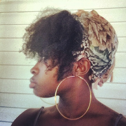 R: I mainly just wear braid outs or puffs throughout the month. Every night I re-braid my hair and moisturize with water, Qhemets Amla Oil and Heavy Cream, and an extra virgin olive oil/castor oil mix. As far as protective styling goes, I wear turbans/headwraps or my half wig!! Also occasionally I will install mini twists!